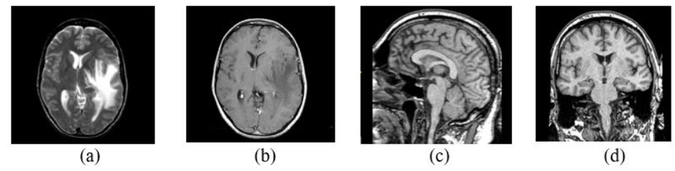 AANLIB Source images of the brain in axial (a) and (b), sagittal (c), and coronal sections (d) [14].