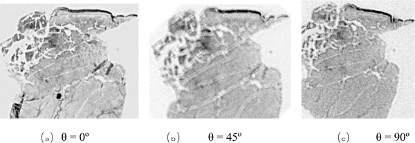 We used a shear polarized transducer-lens system (Fig. 23) to determine whether or not a thinly sectioned melanoma skin tissue is isotropic [1, 7]. The tissue was visualized with the transducer-lens system with frequency at 75 MHz. The tissue was rotated with the angles of 0º, 45º and 90º (Fig. 25). In this specimen, anisotropy was not observed. Since virtually no contrast difference was observed in the acoustic images when formed at different angles, we concluded that there is no or weak anisotropy.